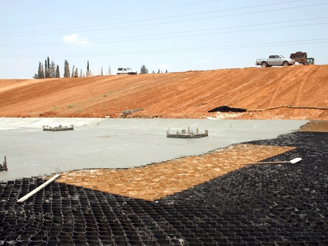 - geobuňky Multicell MC 30/150 4,90x2,42m, postačující výška 15 cm, cca 30 buněk na m2.