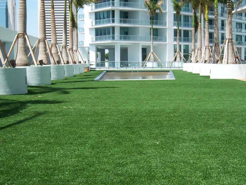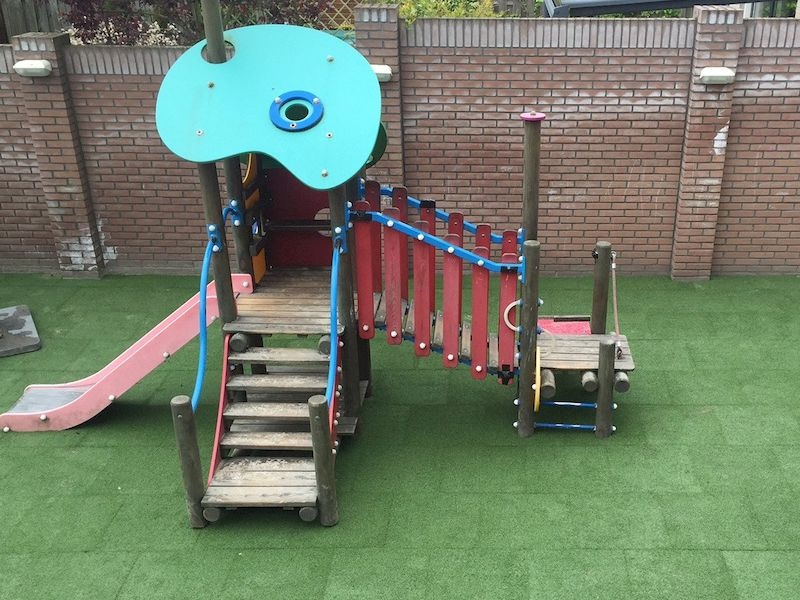 Výhodou této dlažby je souvislá vrstva volně přecházející z klasické gumové dlažby do umělého trávníku. Díky tomu se nemůže stát, že by se jednotlivé vrstvy oddělily.
