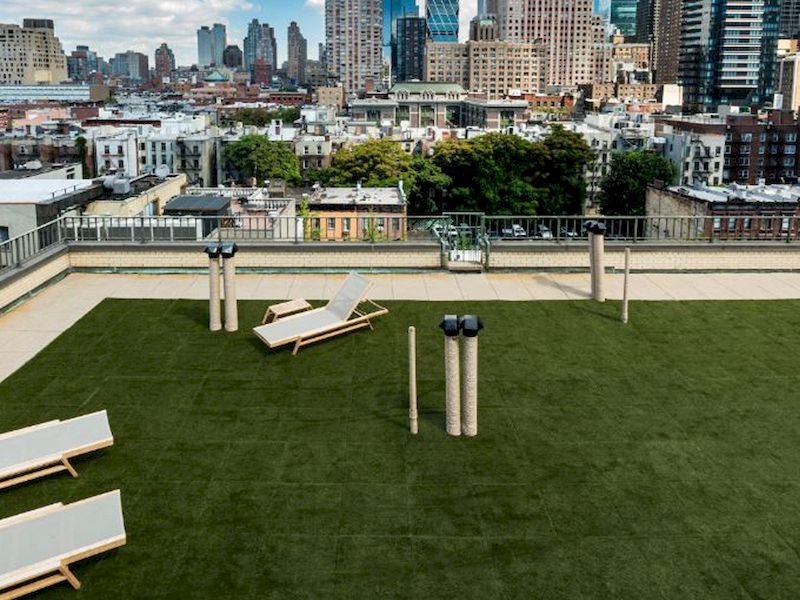 Výhodou této dlažby je souvislá vrstva volně přecházející z klasické gumové dlažby do umělého trávníku. Díky tomu se nemůže stát, že by se jednotlivé vrstvy oddělily.