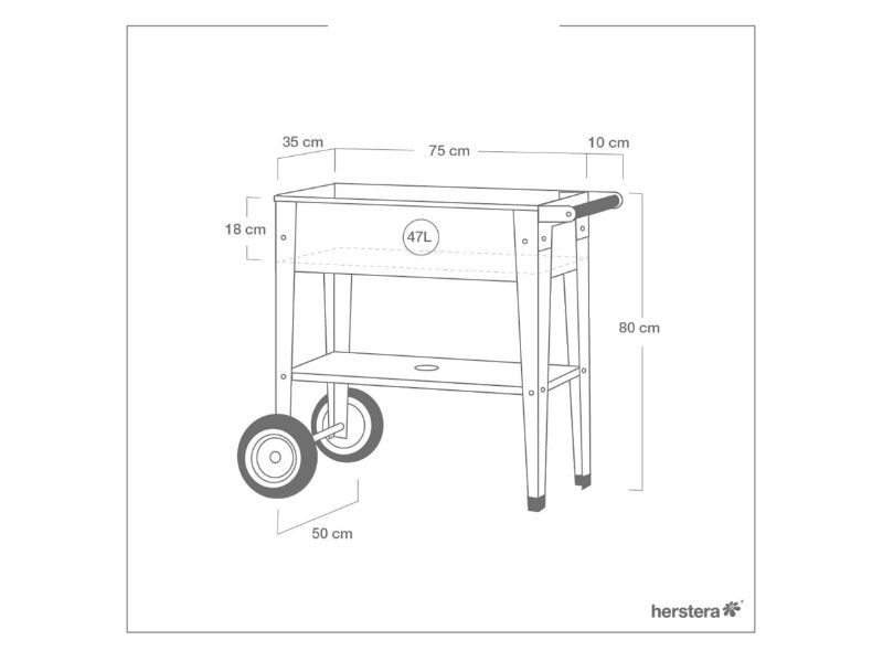 Tento moderní záhon je svou velikostí ideální pro terasy, balkony a zahrady a díky kolečkům a madlu jej lze lehce přemisťovat. Vhodný pro výsadbu rostlin všeho druhu, včetně bylinek. Svou výškou zajistí také komfort pro záda při péči o vaši zeleň.