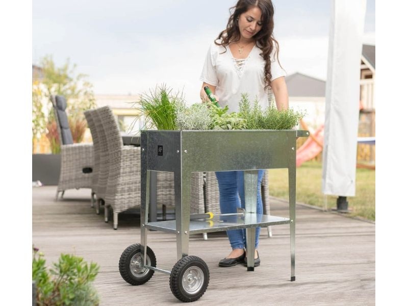 Tento moderní záhon je svou velikostí ideální pro terasy, balkony a zahrady a díky kolečkům a madlu jej lze lehce přemisťovat. Vhodný pro výsadbu rostlin všeho druhu, včetně bylinek. Svou výškou zajistí také komfort pro záda při péči o vaši zeleň.