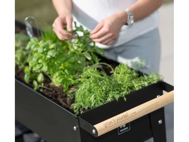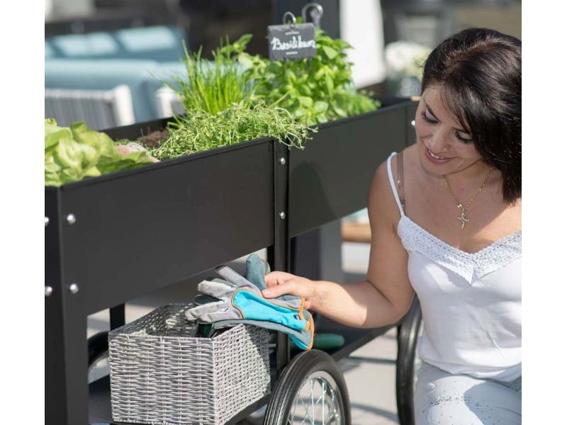 Tento moderní záhon je svou velikostí ideální pro terasy, balkony a zahrady a díky kolečkům a madlu jej lze lehce přemisťovat. Vhodný pro výsadbu rostlin všeho druhu, včetně bylinek. Svou výškou zajistí také komfort pro záda při péči o vaši zeleň.