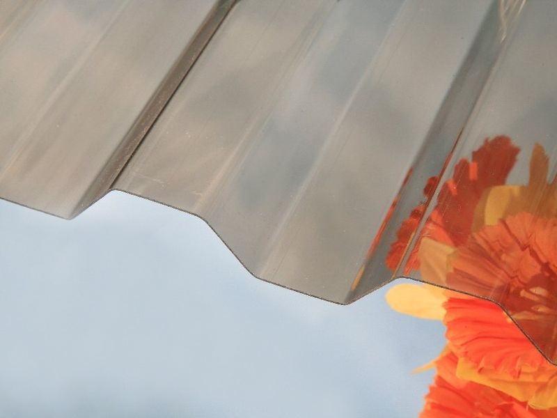 Trapézové desky z polykarbonátu o síle 0,8 mm jsou úplně hladké, průhledné, bez povrchové krupičky. Polykarbonátové desky dodáváme v čiré nebo v průhledné kouřově hnědé barvě.