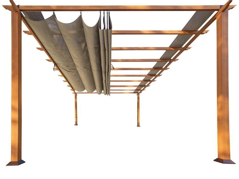 Konstrukce je vyrobena z práškově lakovaného hliníku, který je až o 20 % silnější než běžné materiály. Speciální povrchová úprava zajišťuje věrnou imitaci dřeva, pergola je zároveň odolná proti rzi i povětrnostním vlivům a prakticky bezúdržbová.