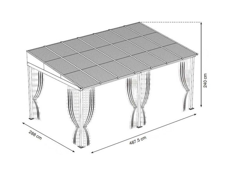 Hliníková pergola ke zdi vám vytvoří příjemné a útulné místo pro odpočinek hned vedle vašeho domu. Je opatřena moskytiérou a dlouhými závěsy, které vám v horkých letních dnech poskytnou stín i soukromí.