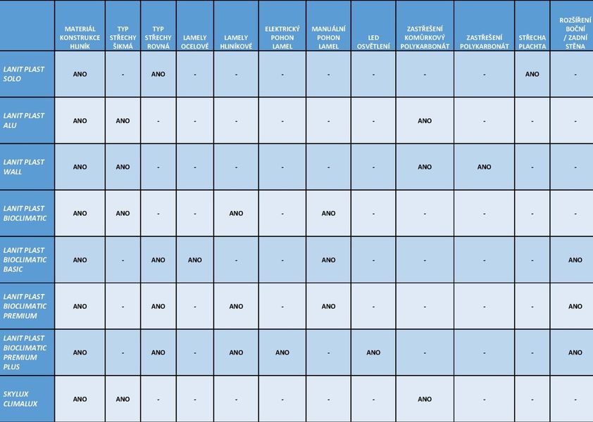 Jedná se o základní verzi bioklimatické pergoly LanitPlast s vodorovnou lamelovou střechou a manuálním ovládáním střešních lamel.