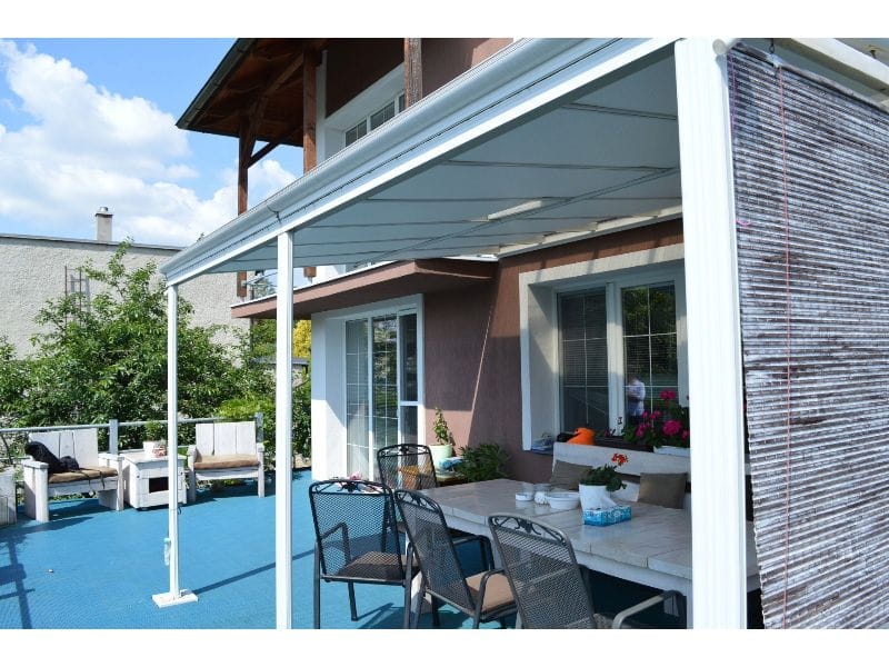 Hliníková pergola ke zdi, ve které naleznete příjemné místo k odpočinku hned vedle vašeho domu. Praktický a bezúdržbový stylový přístřešek, pod nímž můžete zrelaxovat na čerstvém vzduchu nebo si užít posezení s přáteli.
