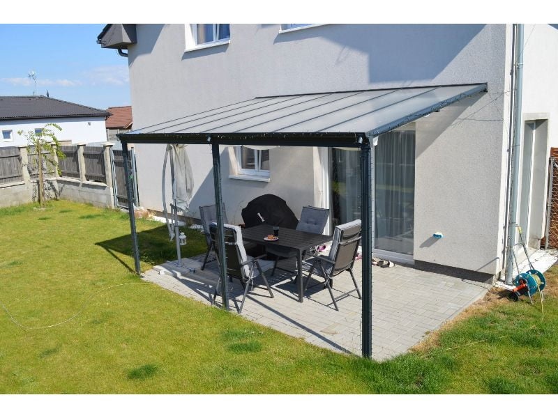 Konstrukce pergoly je vyrobená z odolné hliníkové slitiny a je nastříkaná práškovou vypalovanou barvou (komaxit), proto trvale odolává přírodním klimatickým vlivům. Střecha je vyrobená z polykarbonátových dvoustěnných desek o síle 6 mm, které dodáváme ve třech barvách: