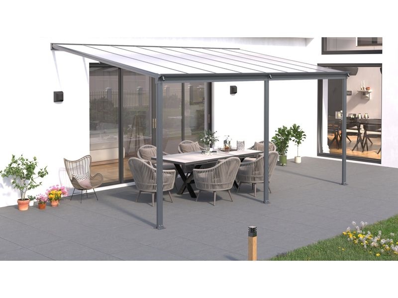 Střecha pergoly tvoří desky z plného polykarbonátu o síle 6 mm – kvalitního a pevného materiálu bez vnitřních komůrek.