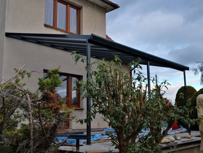 Hliníkovou pergolu je možné použít na zastínění terasy, verandy nebo venkovního přístřešku pro auto (carport). Rozměry jsou udávány v pořadí šířka × hloubka.