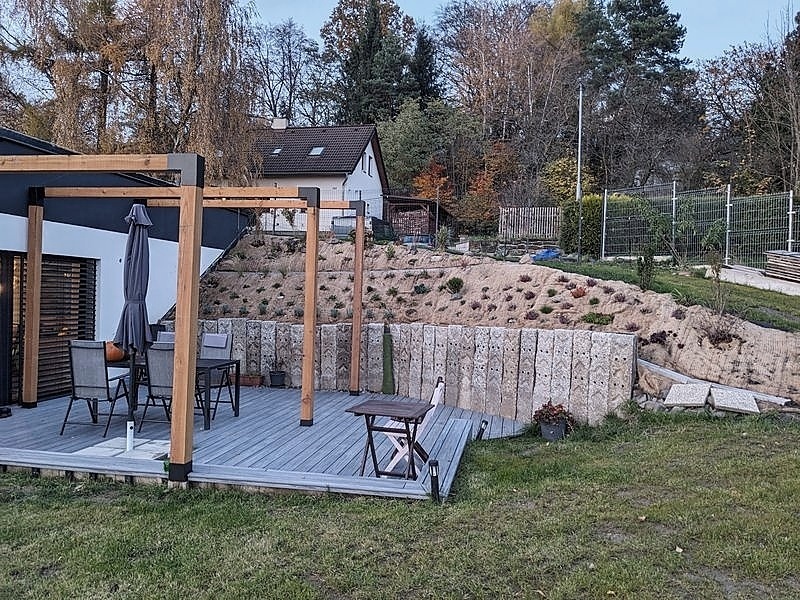 2. Výsadba vegetace: Větší rostliny, keře a stromy lze vysadit před pokládkou kokosové rohože. Výsadbu menší vegetace je možné provést přes položenou rohož, stačí ji nastřihnout nebo proříznout ostrým předmět a skrze otvory provléci vysazené rostliny.