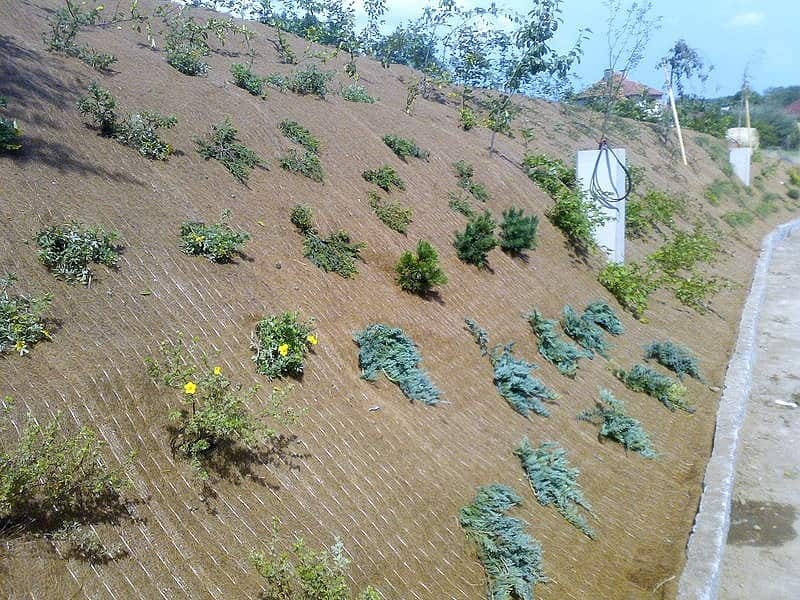 zda na svah se sklonem cca 45 stupňů o délce 8 metrů a šířce 4 metry je vhodná rohož Geomat K-PF? Svah bude osázen pokryvnými rostlinami a pokryt mulčovací kůrou.