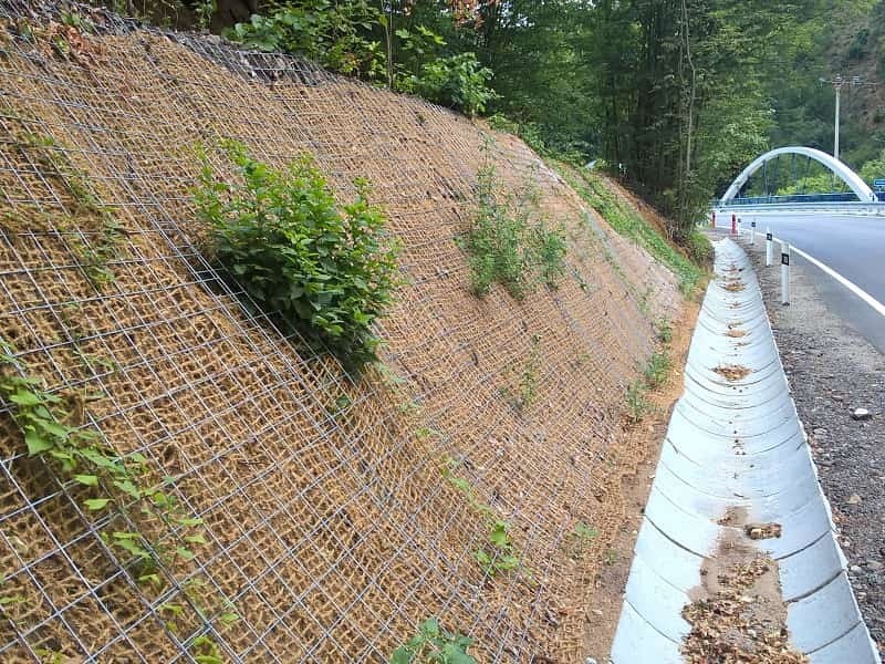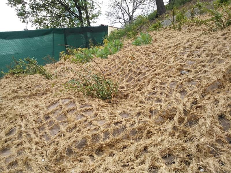 a) položíte netkanou textilii Agrotex N 50 a na ní kokosovou síť Geomanet K700,