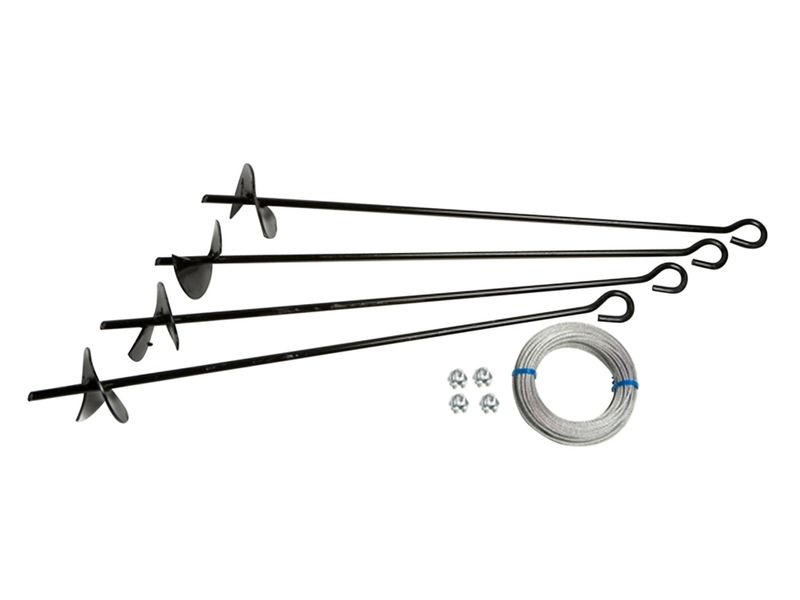 Kotvící sada do země pro montáž kovových zahradních domků Arrow. Sada obsahuje: 4 kotvy do země, lana a úchyty. S jejich pomocí jednoduše a správně připevníte váš domeček k zemi.
