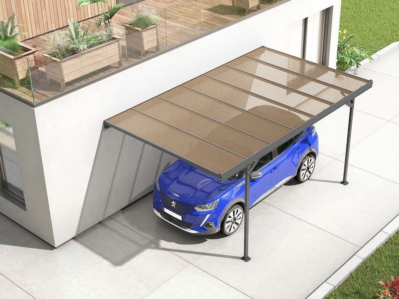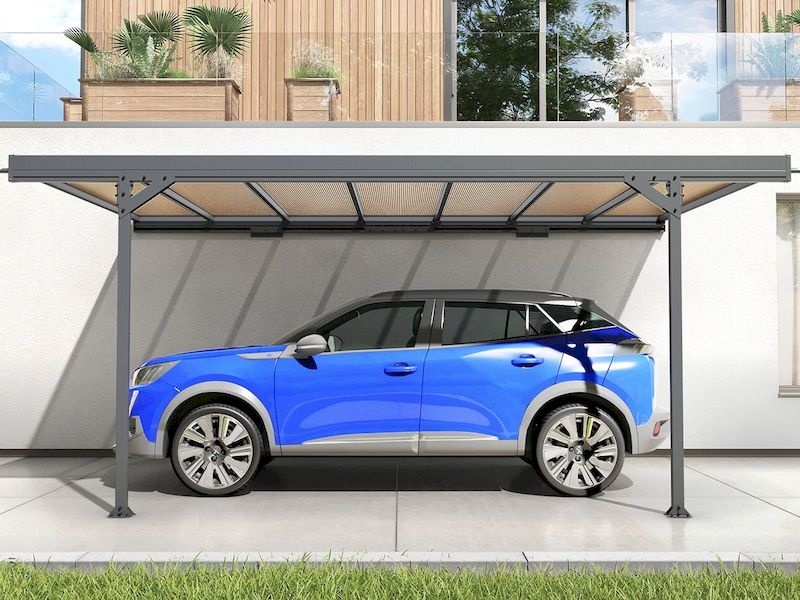 Celohliníkový přístřešek ke zdi skvěle poslouží jako garážové stání pro váš automobil. Přístřešek na auto můžete využít i na uskladnění zahradního traktůrku nebo zahradní mechanizace, popřípadě jako přístřešek pro zahradní posezení.