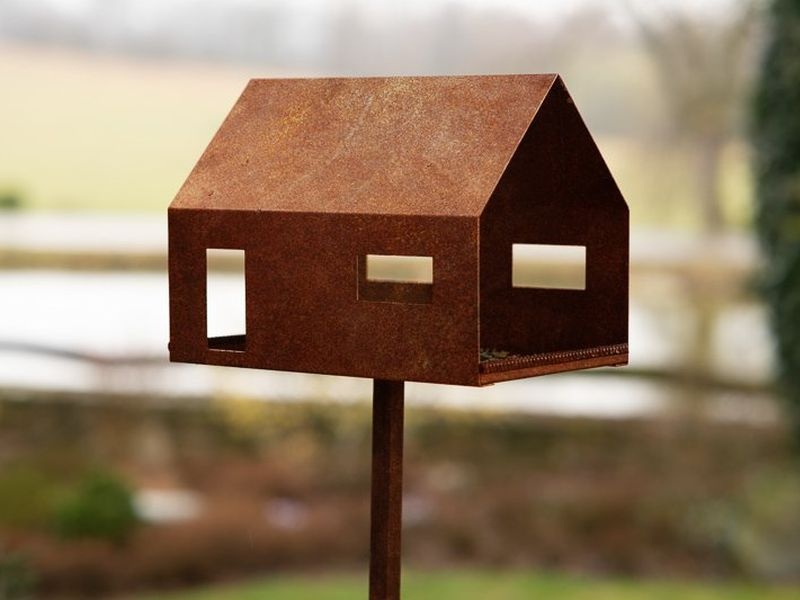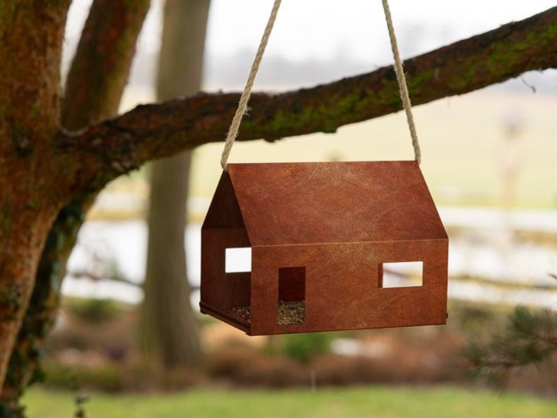 Celé krmítko pro ptáky je vyrobeno z vysoce odolné švédské cortenové oceli, která časem získává jedinečnou patinu.