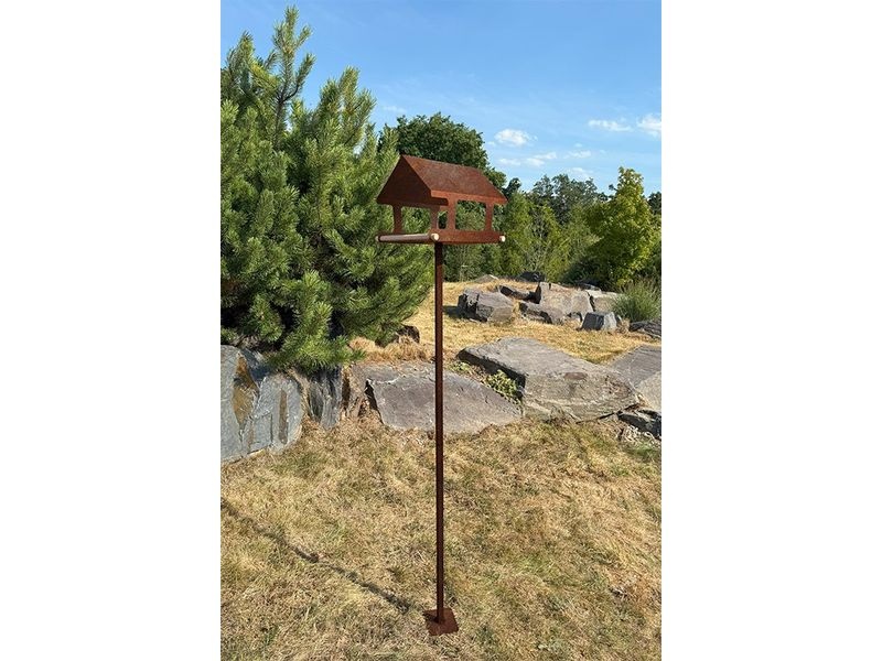 Celé krmítko pro ptáky je vyrobeno z vysoce odolné švédské cortenové oceli, která časem získává jedinečnou patinu.