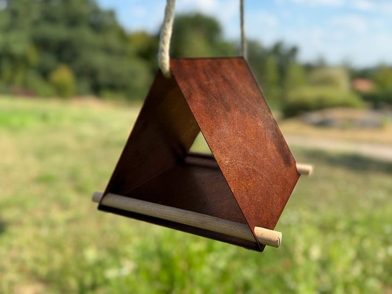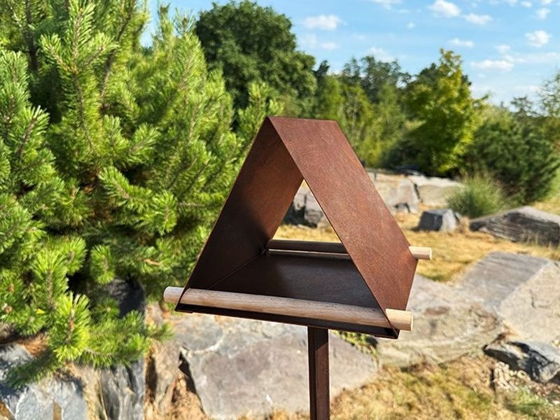 Celé krmítko pro ptáky je vyrobeno z vysoce odolné švédské cortenové oceli, která časem získává jedinečnou patinu.