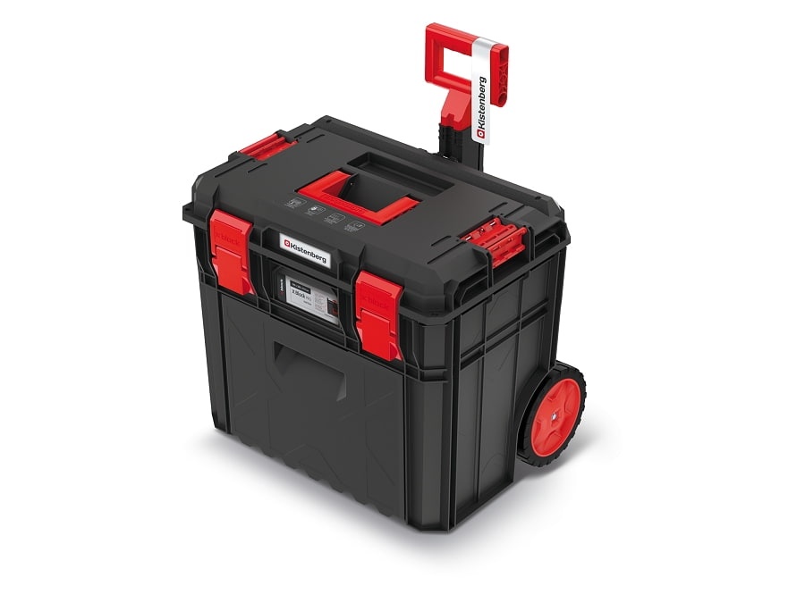 Boxy zaručují únosnost po stoupnutí až 120 kg, proto je lze využít také jako pracovní plošinu při montážích. Maximální kapacita zatížení při sestavení kufrů na nářadí je až 50 kg. Kufry připojovat za pomocí zámkového systému.