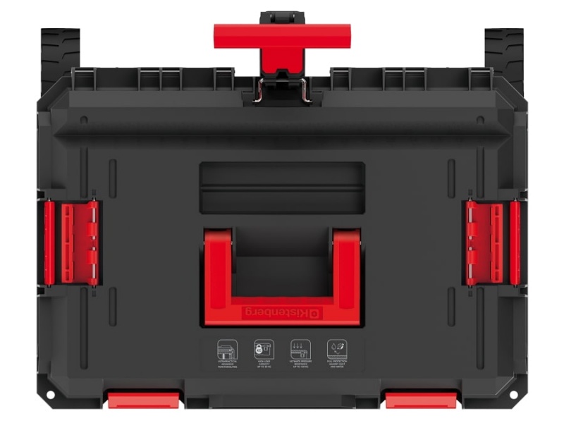 Boxy zaručují únosnost po stoupnutí až 120 kg, proto je lze využít také jako pracovní plošinu při montážích. Maximální kapacita zatížení při sestavení kufrů na nářadí je až 50 kg. Kufry připojovat za pomocí zámkového systému.