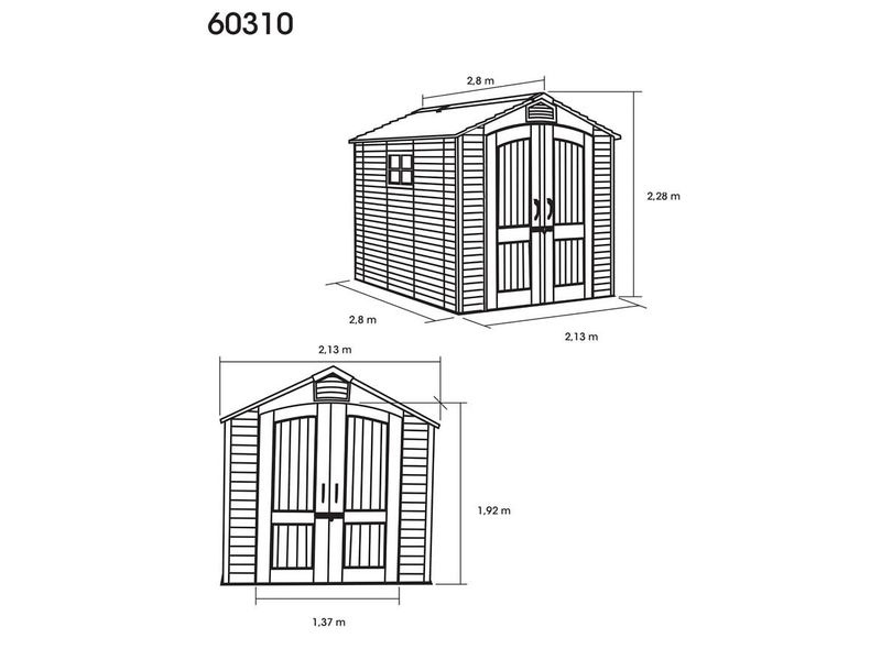 Součástí domku jsou také velké dvoukřídlé dveře, které umožňují snadný přístup a jednoduché uložení vašeho vybavení. Můžete tak v domku bez problému uschovat i širší zahradní náčinní.