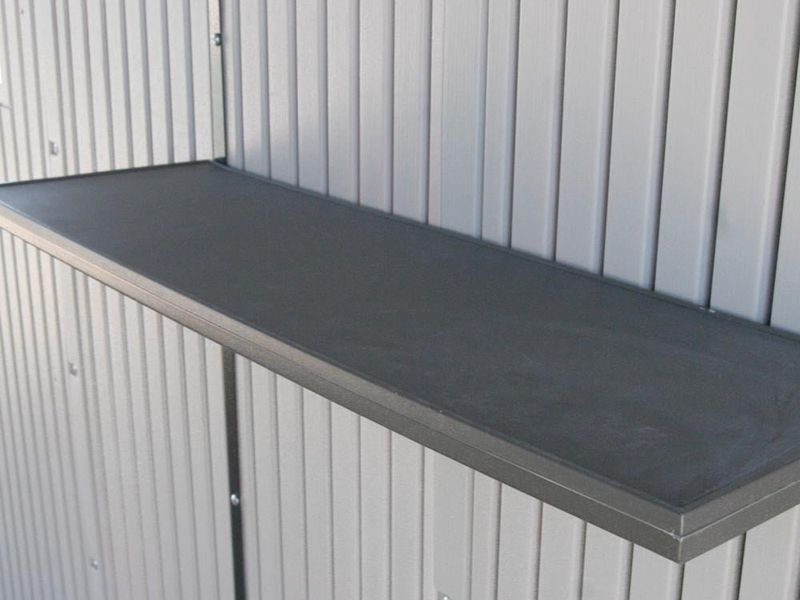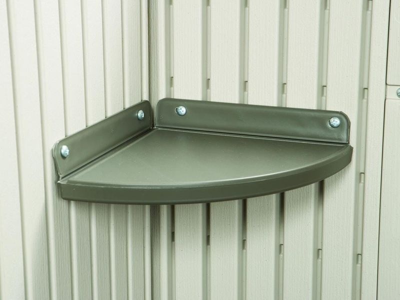 Součástí domku je police (76 × 25 cm), na které můžete uschovat například kufr s nářadím. Dále také dvě rohové police, které poskytují plný komfort.