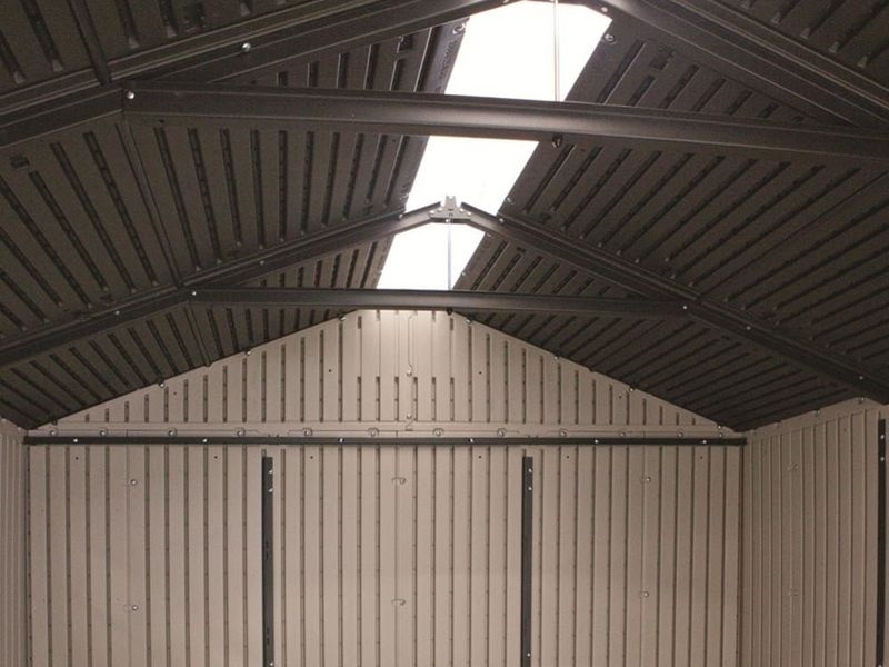 Konstrukce z dvoustěnného, kovem vyztuženého plastu HDPE (tvrdý polyethylen) zajišťuje domku obrovskou stabilitu. Střešní konstrukce z vysoce výkonné oceli vydrží zatížení až 195 kg/m² a ideální sklon střechy navíc umožňuje rychlý odtok vody a sněhu.