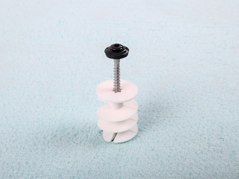 Obsahuje hmoždinku a vrut v barvách nerez, RAL9005 nebo RAL7016. Je možné šroubovat do omítnutého i neomítnutého polystyrenu. Balení po 10 ks. Rozměr vrutu 4,5 × 45 mm.