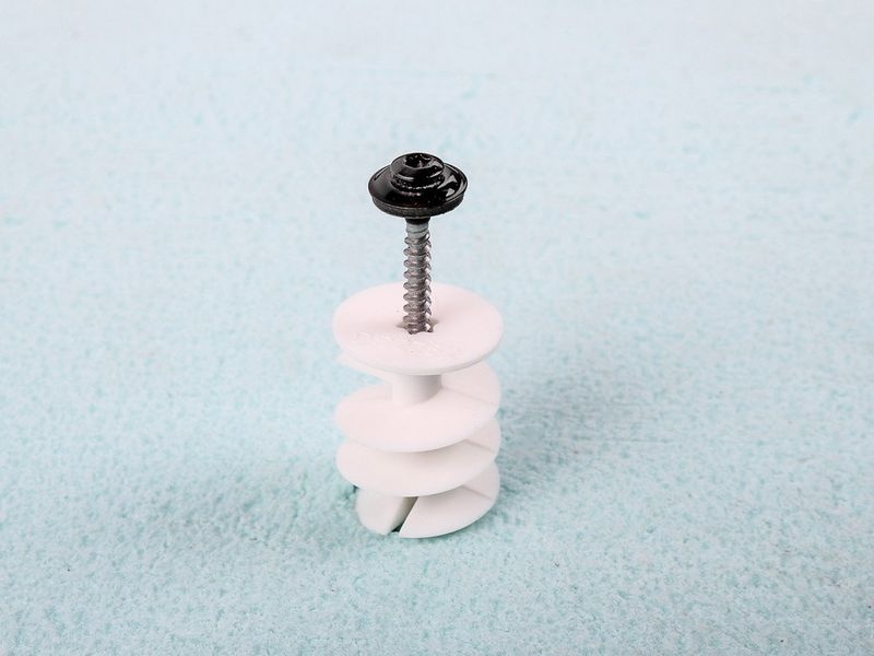 Obsahuje hmoždinku a vrut v barvách nerez, RAL9005 nebo RAL7016. Je možné šroubovat do omítnutého i neomítnutého polystyrenu. Balení po 10 ks. Rozměr vrutu 4,5 × 45 mm.