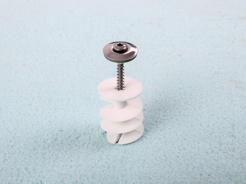 Obsahuje hmoždinku a vrut v barvách nerez, RAL9005 nebo RAL7016. Je možné šroubovat do omítnutého i neomítnutého polystyrenu. Balení po 10 ks. Rozměr vrutu 4,5 × 45 mm.