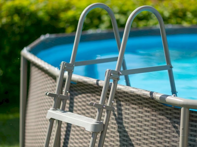 3. Schůdky do bazénu – Žebřík s protiskluzovým povrhem zajišťuje bezpečný a pohodlný vstup a výstup z/do nadzemního bazénu.