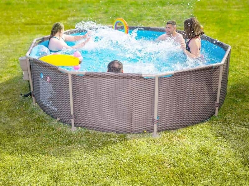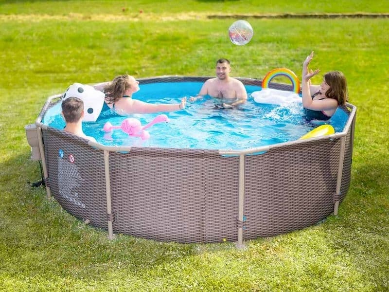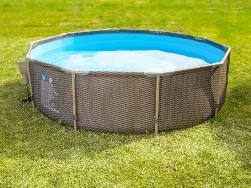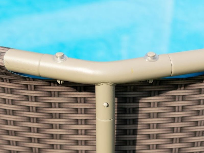 Rámová konstrukce nadzemního bazénu se skládá z trubek z pokovené oceli. Vnější stěna bazénu imituje ratanový povrch, který velmi dobře zapadne téměř do jakékoli zahrady.