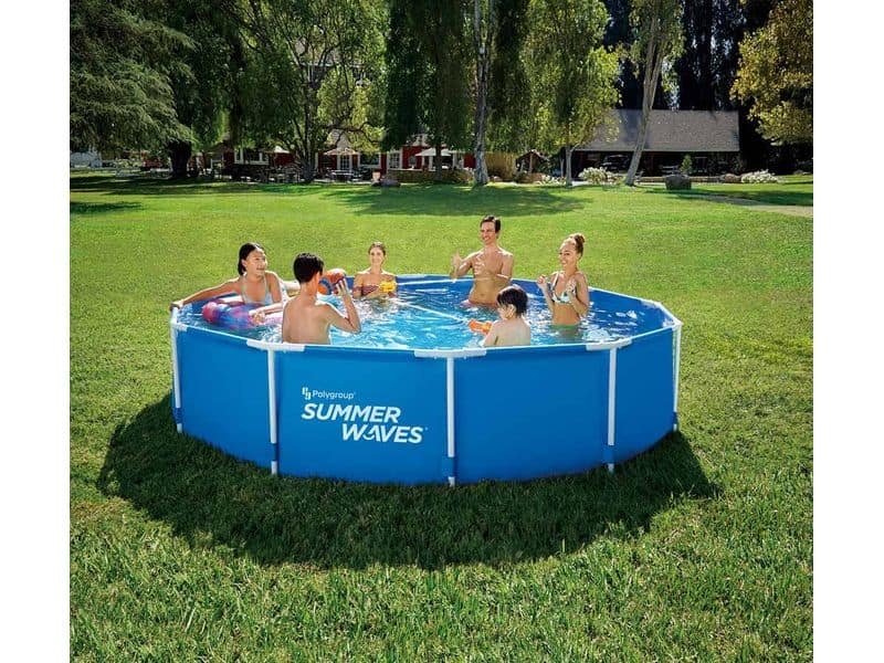 Rámová konstrukce nadzemního bazénu se skládá z trubek z pokovené oceli. Vnější stěna bazénu má klasický modrý design.