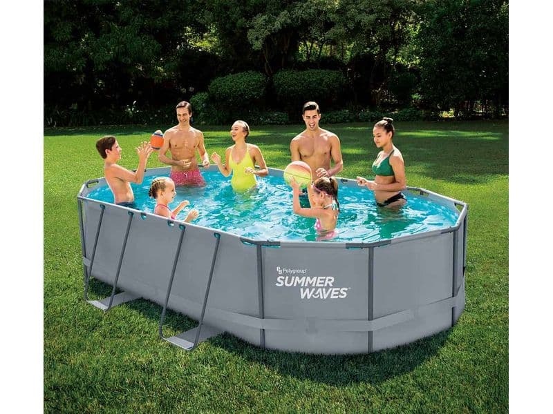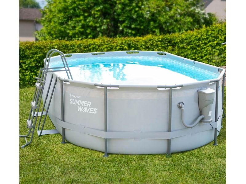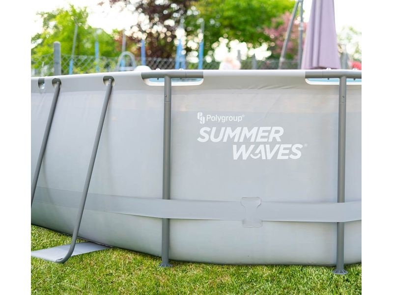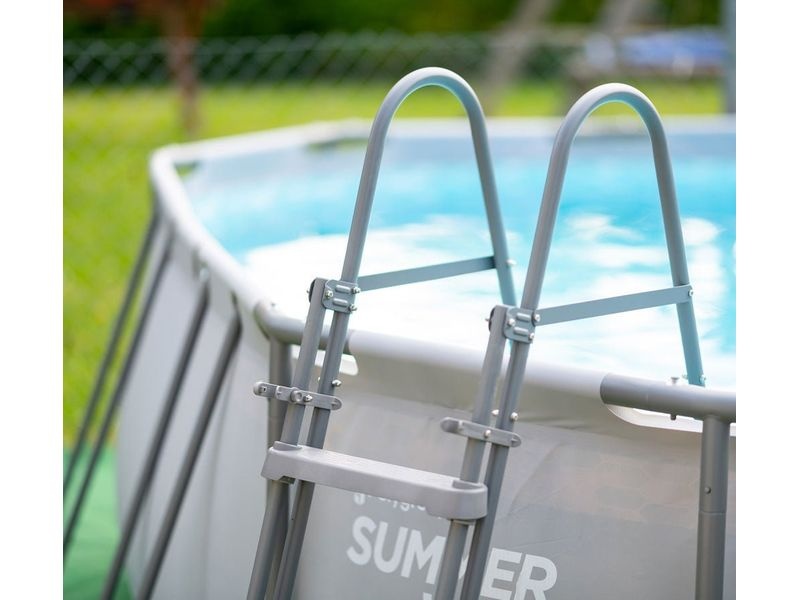 Rámová konstrukce nadzemního bazénu se skládá z trubek z pokovené oceli. Vnější stěna bazénu má šedý design, který velmi dobře zapadne téměř do jakékoli zahrady.