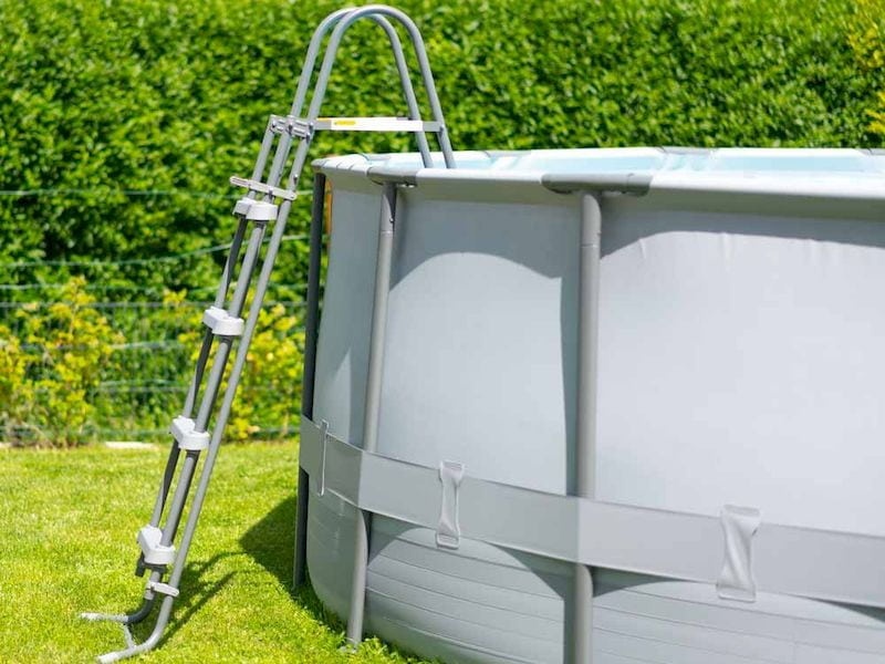 2. Schůdky do bazénu – Žebřík s protiskluzovým povrhem zajišťuje bezpečný a pohodlný vstup a výstup z/do nadzemního bazénu.