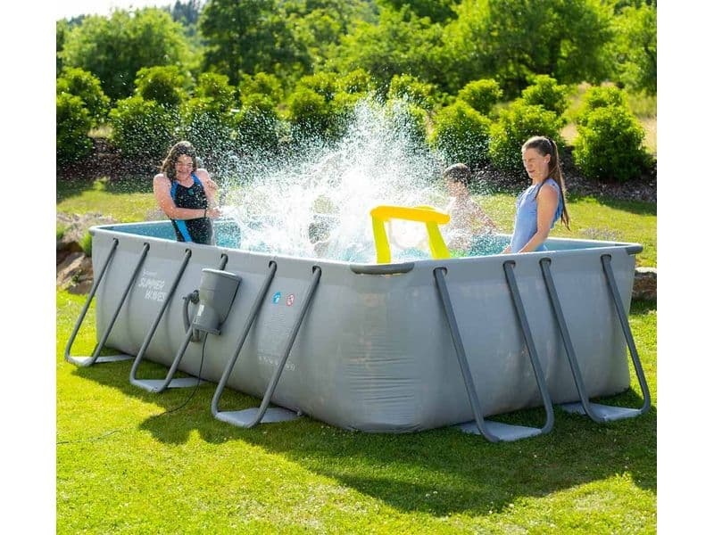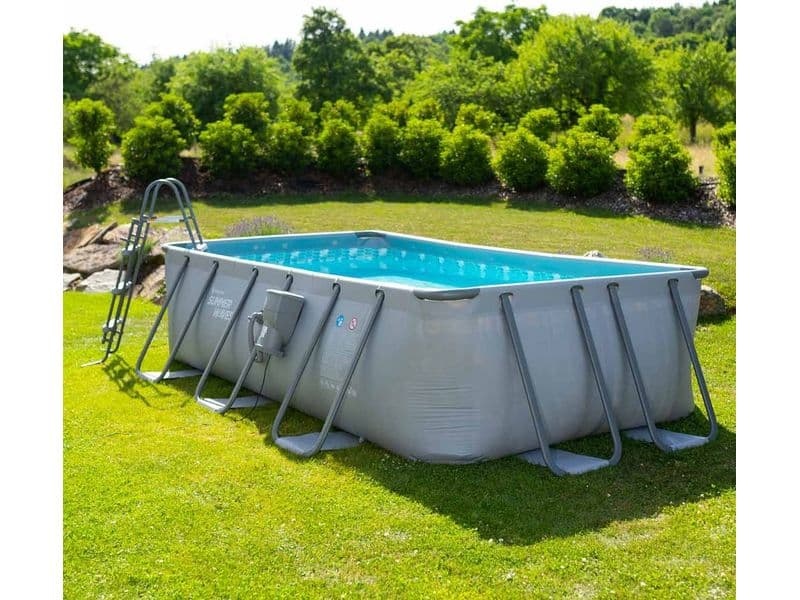 Rámová konstrukce nadzemního bazénu se skládá z trubek z pokovené oceli. Vnější stěna bazénu v elegantním šedém odstínu velmi dobře zapadne téměř do jakékoli zahrady.