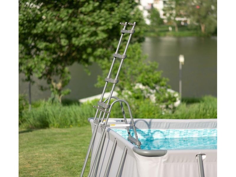 3. Schůdky do bazénu – Žebřík s protiskluzovým povrhem zajišťuje bezpečný a pohodlný vstup a výstup z/do nadzemního bazénu.