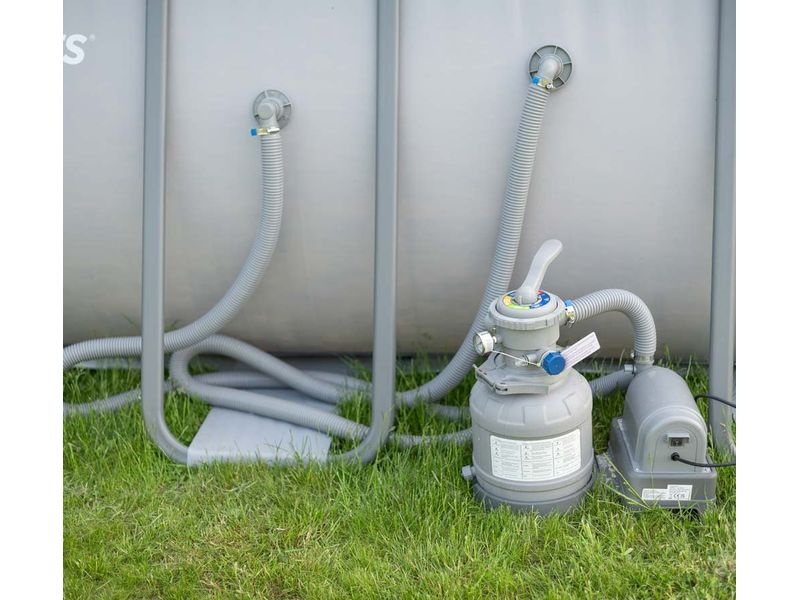 2. Veškeré důležité příslušenství je součástí základního setu. Bazény jsou dodávány včetně filtrace, krycí plachty i schůdků. Základní balení tak obsahuje všechny komponenty potřebné pro uvedení bazénu do provozu i pro jeho další využívání. Bazén stačí sestavit, napustit vodou – a máte hotovo!