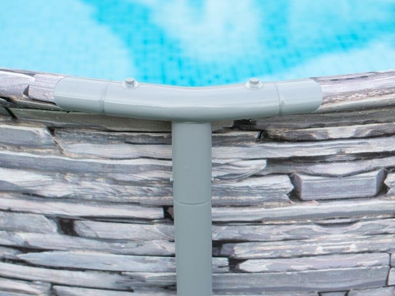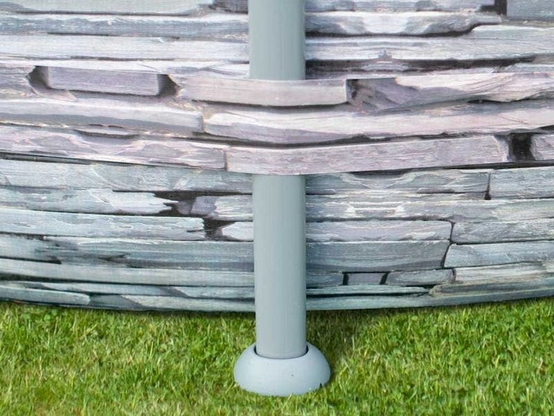 Rámová konstrukce nadzemního bazénu se skládá z trubek z pokovené oceli. Vnější stěna bazénu v elegantním šedém odstínu velmi dobře zapadne téměř do jakékoli zahrady.