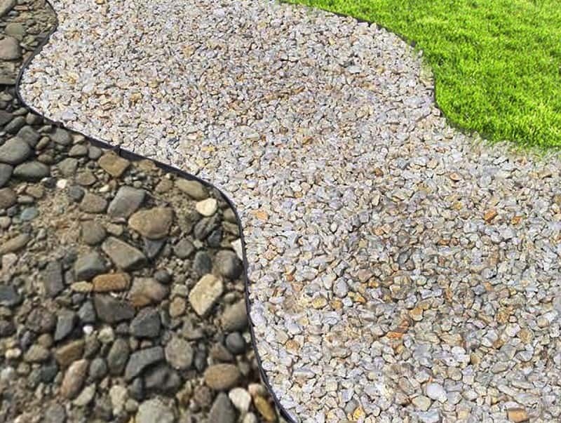 Neviditelný plastový obrubník oddělí trávník a záhon s mulčovací kůrou, trávník a kamínkový (štěrkový) záhon, trávník a zámkovou dlažbu, betonové plochy, chodníky, terasy nebo třeba okapové chodníčky.