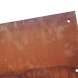 Obrubník je vyrobený z oceli se vzhledem cortenu. Po uložení obrubníků v zemině se působením větru začne na povrchu materiálu vytvářet rezavá patina, která zabraňuje další korozi.