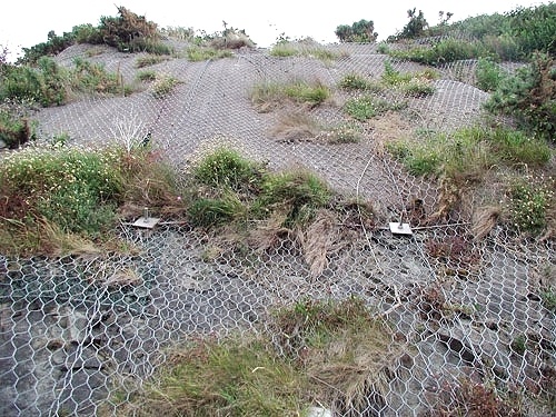 Geomanet SAR je ocelová síť na ochranu skalních stěn a svahů proti uvolňování jednotlivých kamenů z povrchu, které tak dráty se při výrobě dvakrát obtáčejí vzájemně kolem sebe a vytvářejí nerozpletitelnou strukturu.