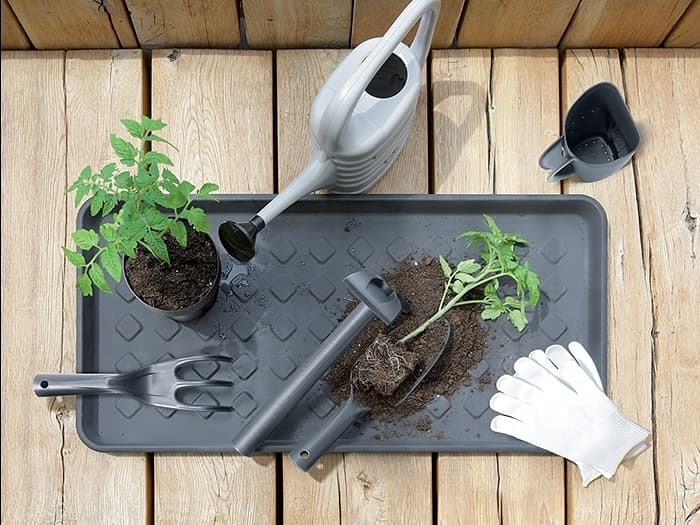 Odkapávací podložka je ideální na přesazování rostlin do květináčů a truhlíků. Nemusíte tak pracně uklízet rozsypanou zeminu z pracovní plochy nebo podlahy.