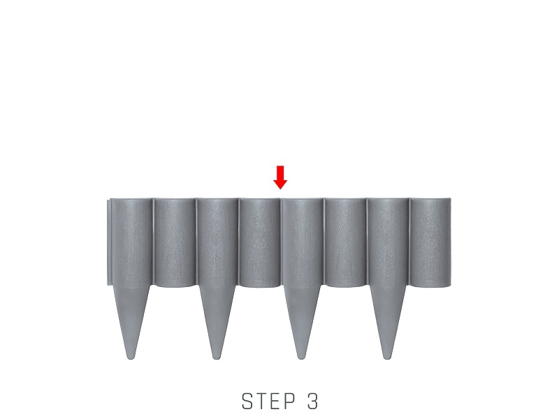 Pak už jen stačí připojit další kus palisády, který zaklapnete do předpřipravených zámků u již ukotveného obrubníku. Můžete tak vytvářet neomezeně dlouhý obrubníkový pás.