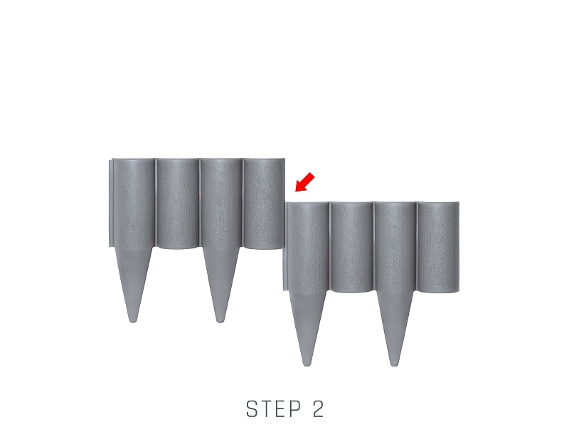 Pak už jen stačí připojit další kus palisády, který zaklapnete do předpřipravených zámků u již ukotveného obrubníku. Můžete tak vytvářet neomezeně dlouhý obrubníkový pás.