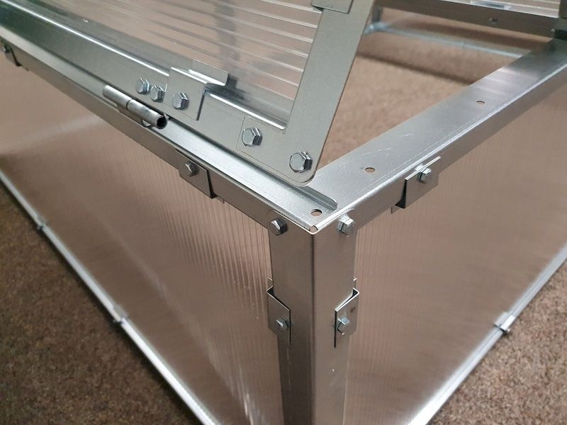 Opláštění je tvořeno z komůrkového dvoustěnného polykarbonátu síly 4 mm. Konstrukce pařeniště je vyrobená z žárově pozinkovaného plechu. Jedná se o pařeniště české výroby.