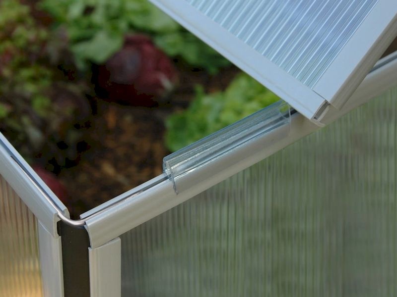 Okno pařeniště se skládá ze dvou lamel a pantů, díky kterým je možné okno „otevřít – shrnout“ k jedné straně pařeniště. Prosklení je z komůrkového dvoustěnného polykarbonátu o síle 4 mm.