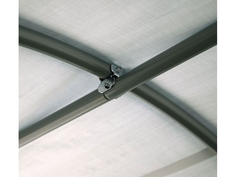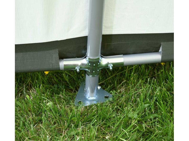 Rám konstrukce je vyroben z ocelových trubek o průměru 35 mm, což zajišťuje pevnost a odolnost. Trubky jsou opatřeny prémiovou antikorozní úpravou. Dodatečnou stabilitu zajišťuje patentovaný zámek ShelterLock, který je přišroubován ke každé příčné tyči a slouží tak jako stabilizátor rámu.