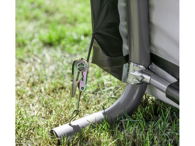 Konstrukce plachty je zajištěna upínacími ráčny. V balení naleznete 6 kotev (76 cm), které slouží k zajištění plachty, a tím je zajištěna proti větru a povětrnostním podmínkám. Výška stěny je 165 cm.