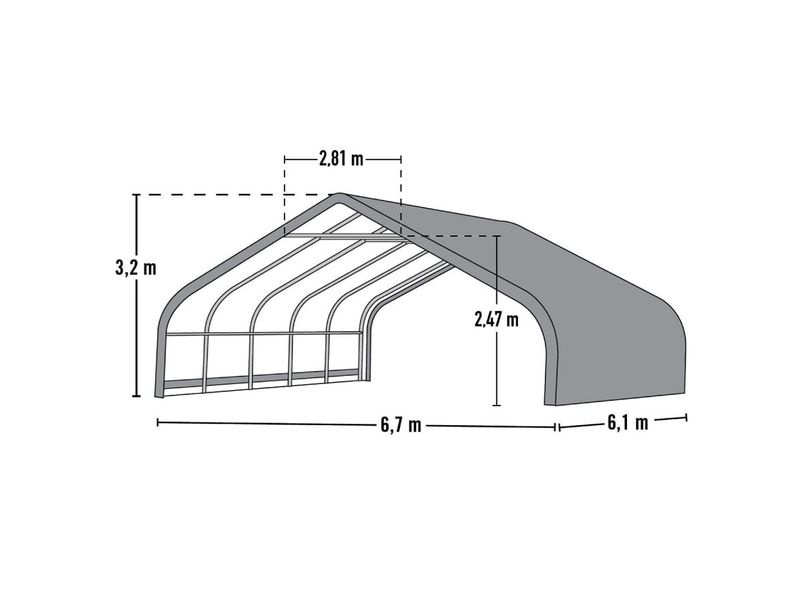 Plachtový přístřešek pro hospodářská zvířata je ideální pro ochranu vašich zvířat před nepříznivým počasím a zajišťuje příjemný stín během slunečních letních dnů. Přístřešek je ideální pro koně, ovce a krávy nebo jako stan pro uskladnění slámy, sena nebo strojů.